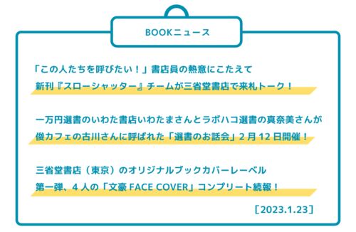 【NEWS01】「この人たちを呼びたい!」書店員の熱意にこたえて新刊『スローシャッター』チームが三省堂書店で来札トーク! 左から『スローシャッター』出版元の田中泰延さん、トークの企画者である三省堂書店札幌店の工藤志昇さん、著者の田所敦嗣さん、装幀…
